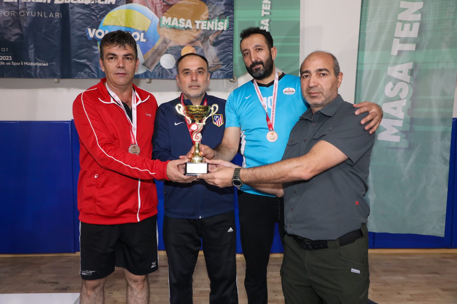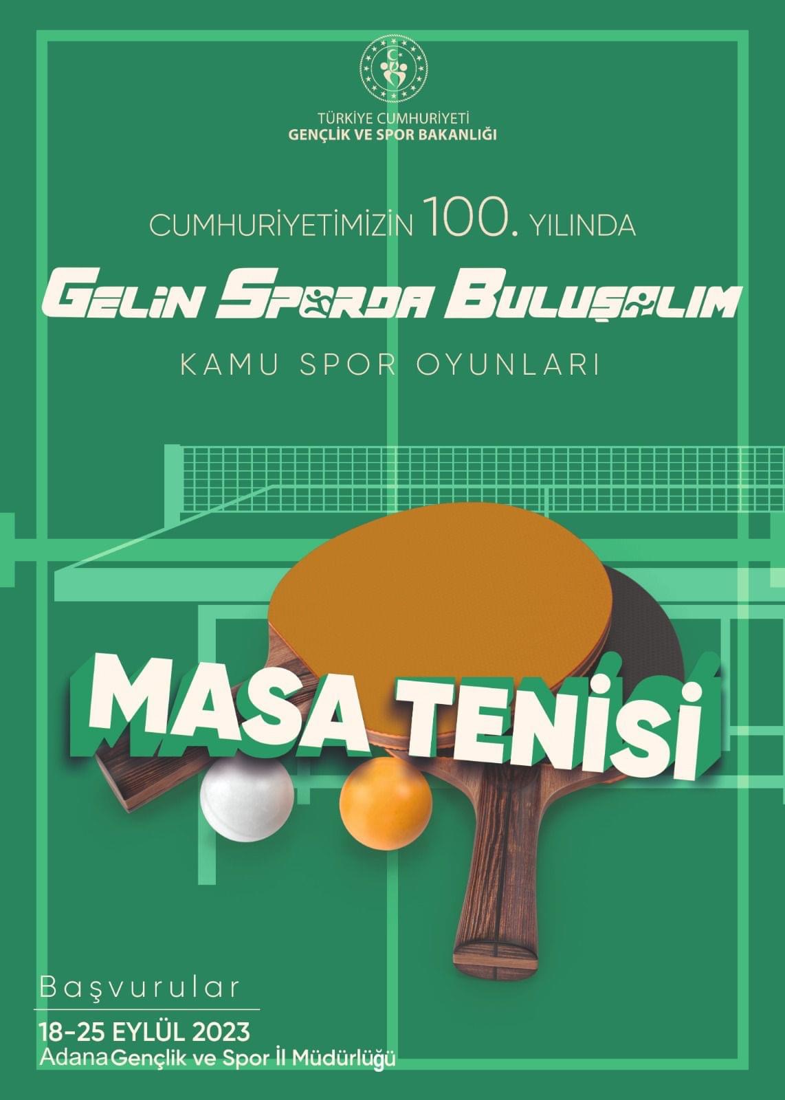 CUMHURİYETİMİZİN 100. YILI KAPSAMINDA; MASA TENİS SPOR DALINDA KAMU KURUMLARININ KATILIMI İLE BİRLİKTE KURUMLAR ARASI, İŞ BİRLİĞİNİ ARTIRMAK, İNSANLARIN BEDENEN VE RUHEN SAĞLIKLI OLMALARINI SAĞLAMAK VE SPOR YAPMA ALIŞKANLIĞINI KAZANDIRMAK AMACIYLA İLİMİZDE SİVAS GENÇLİK VE SPOR İL MÜDÜRLÜĞÜ MASA TENİSİ İL TEMSİLCİLİĞİ TARAFINDAN 01 EKİM 2023 PAZAR GÜNÜ SAAT 14:00-20:00 ARASINDA MECNUN OTYAKMAZ SPOR SALONUNDA CUMHURİYETİMİZİN 100. YIL KAMU SPOR OYUNLARI