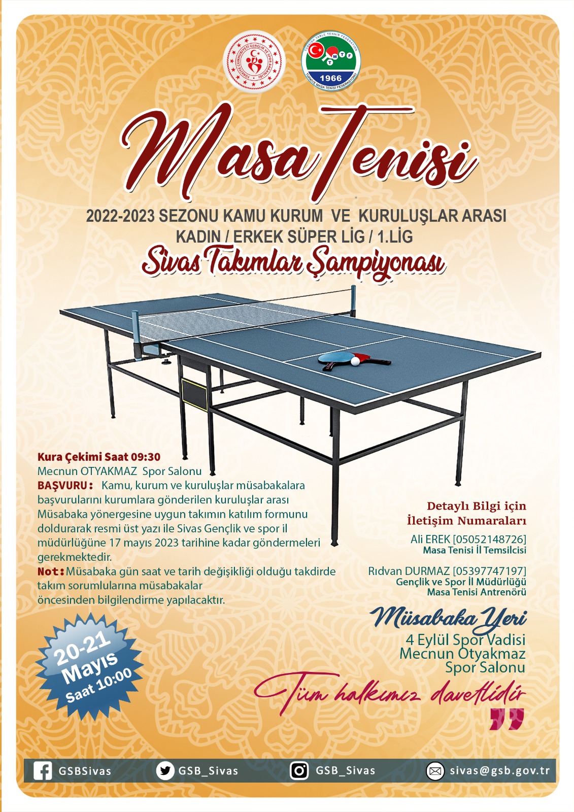 KULÜPLER ARASI U-19 FERDİ GENÇ ERKEKLER VE KIZLAR MASA TENİSİ MÜSABAKALARI VE ÖDÜL TÖRENİ