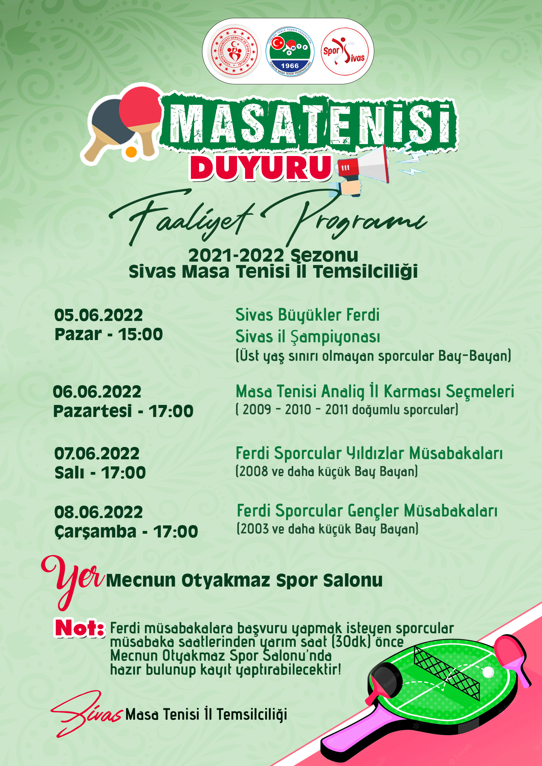 2022-2023 SİVAS MASA TENİSİ YILLIK FAALİYETLERİMİZ