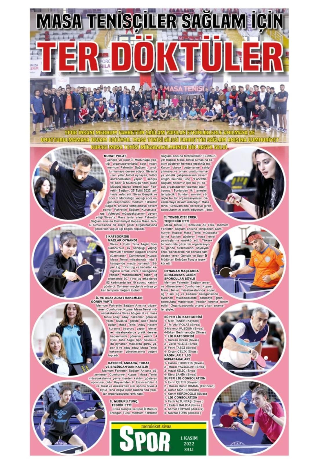 Kuruluşlar Arası Masa Tenisi İl Şampiyonasında Madalyalar Sahiplerini Buldu